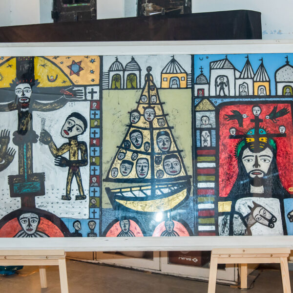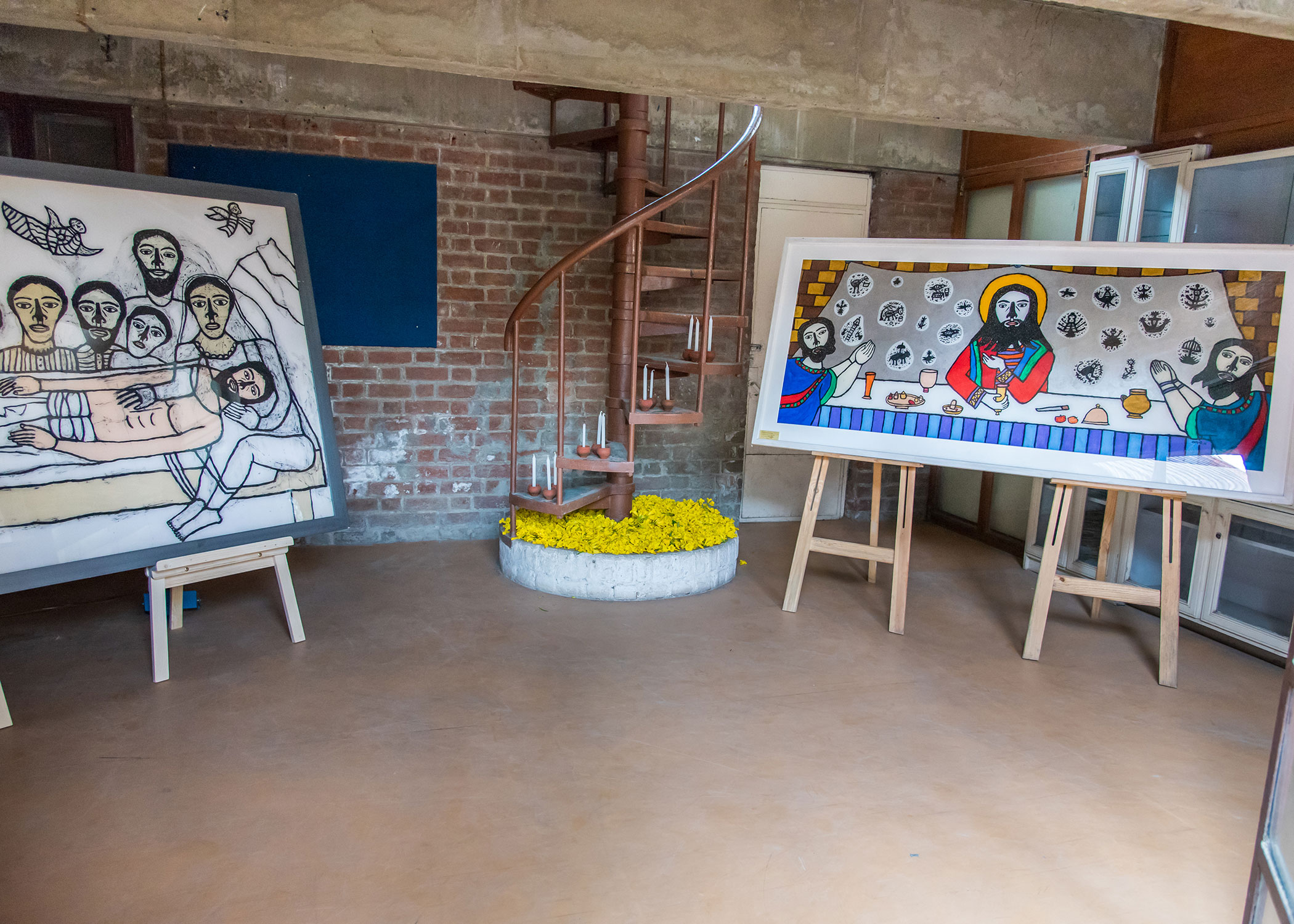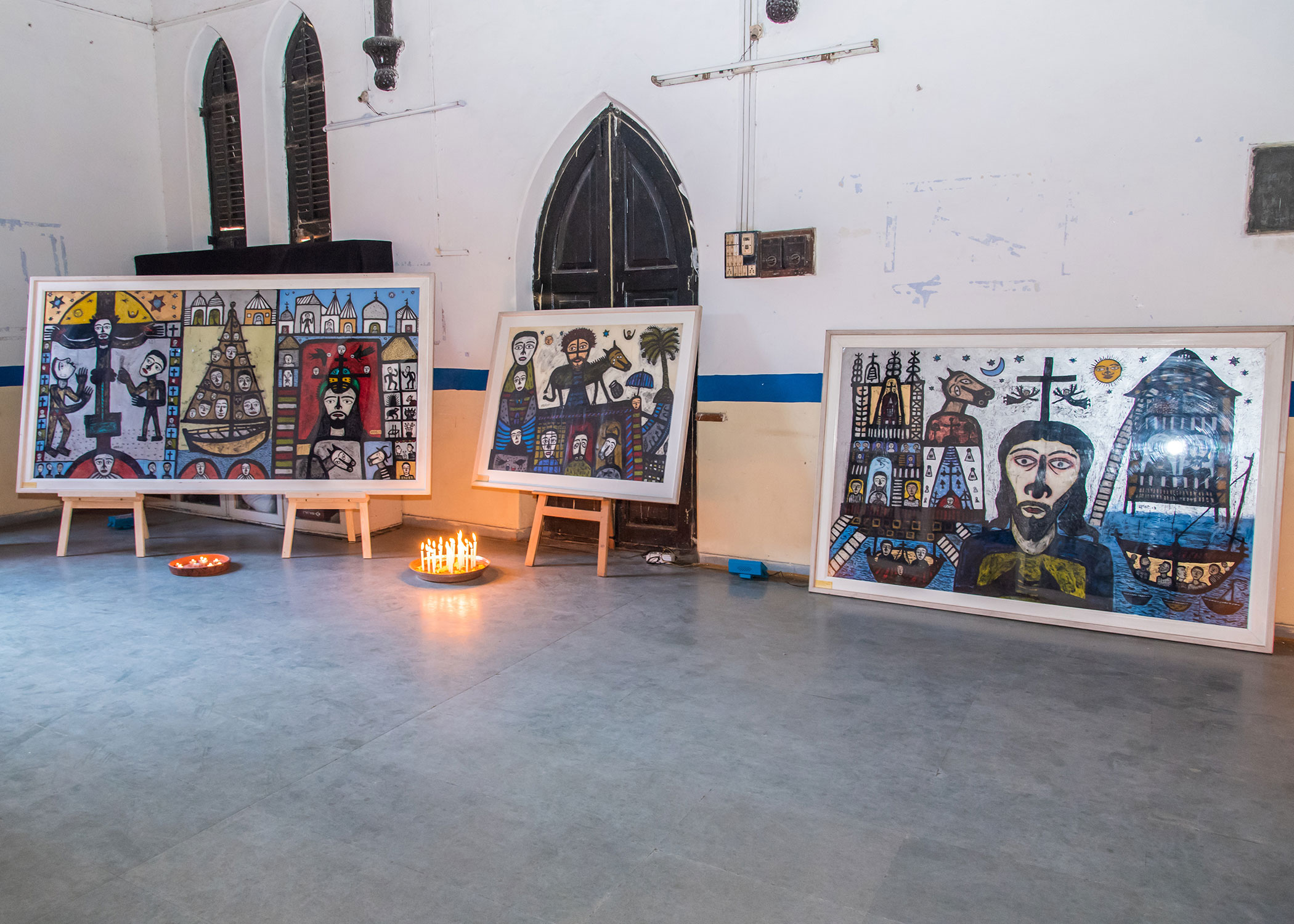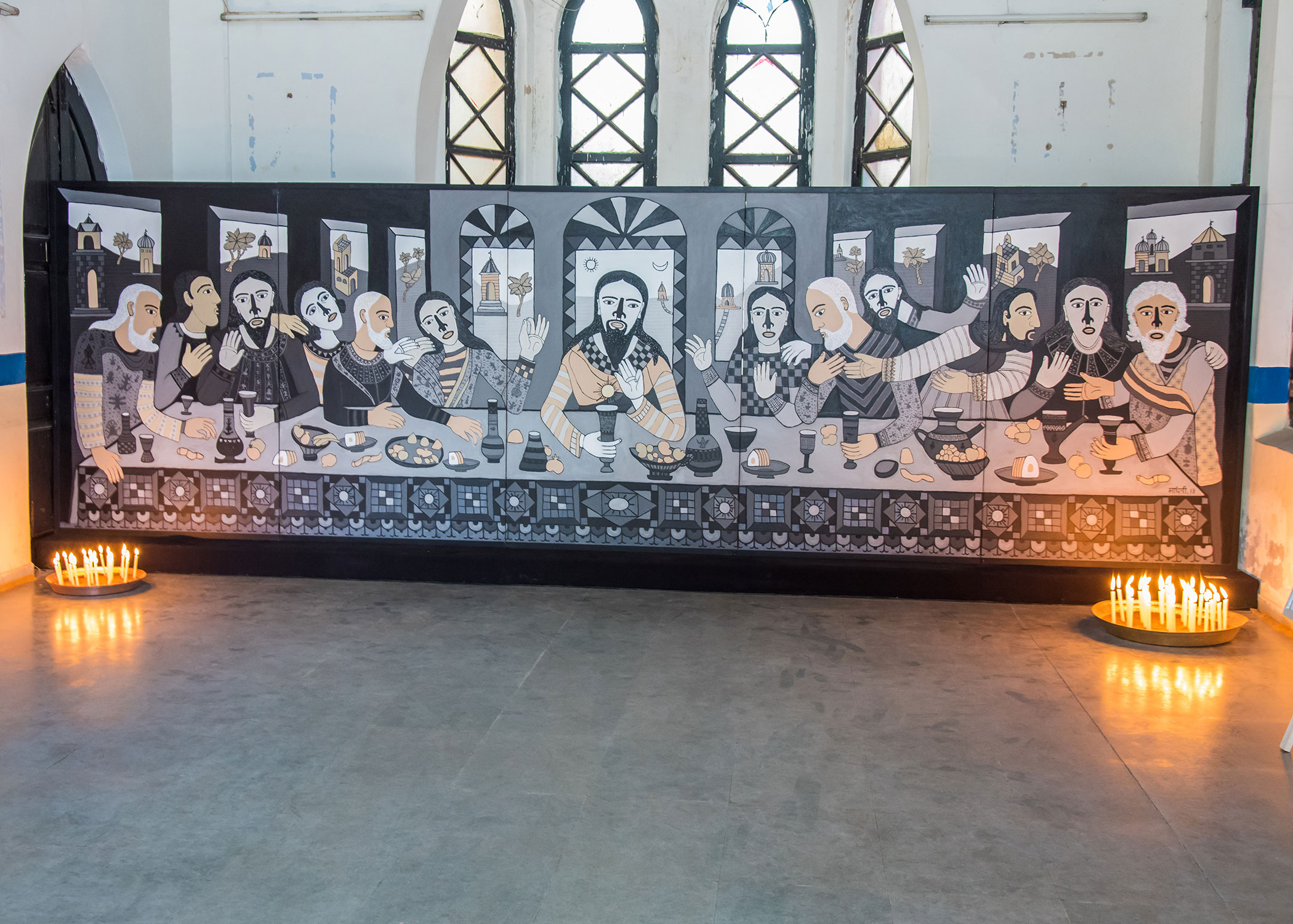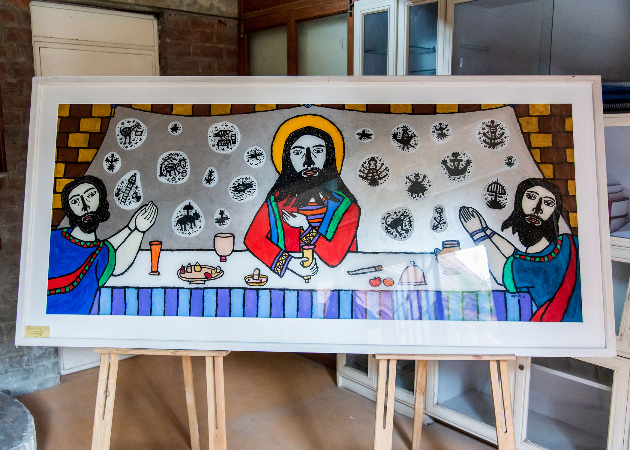 ‘The Last Supper’, a series of reverse paintings on acrylic by Madhvi Parekh, an art exhibition held in the Chapel at the GUST, Ahmedabad.